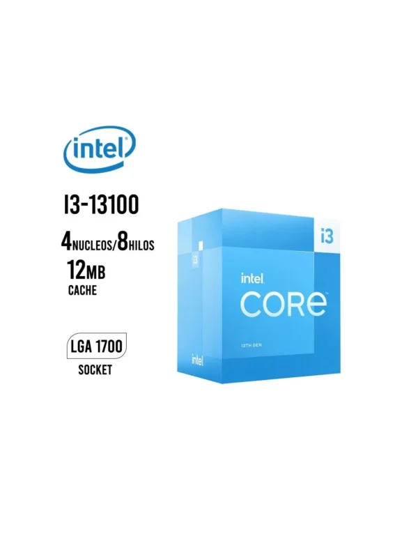 Intel Core i3-13100F Processor (BX8071513100F) โ 12th Gen Raptor Lake-S quad-core CPU with 3.4GHz base frequency, 8 threads, 12MB Smart Cache, up to 4.5GHz turbo, LGA1700 socket, 58W TDP, and boxed packaging (no integrated graphics)