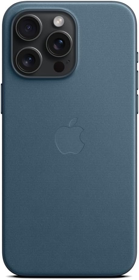 The Apple FineWoven Case with MagSafe in Pacific Blue is crafted from durable microtwill with a soft, suede-like feel. Designed to snugly fit the iPhone 15 Pro Max, it features built-in magnets for seamless MagSafe alignment and faster wireless charging. Made from 68% post-consumer recycled content, this case offers a sustainable alternative to leather while maintaining Appleβs signature precision and quality.
