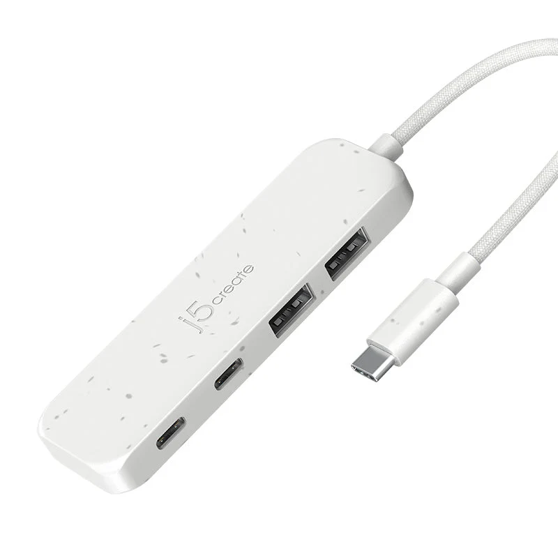 J5CREATE JCH342EW USB-C™ to 4-Port Gen 2 Hub (White) — 2 x USB-C™, 2 x USB-A, 10Gbps SuperSpeed+, Eco-Friendly, Bus-Powered