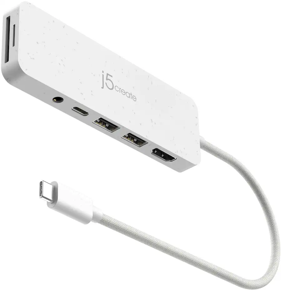 The JCD373EW from j5create is an eco-conscious USB-C® multi-port hub designed to expand your laptop or tablet’s connectivity with essential I/O ports. It features HDMI™ video output, two USB™ 3.1 Gen 1 Type-A ports, SD™ and microSD™ card readers, a 3.5mm audio/mic combo jack, and USB-C® Power Delivery 3.0 passthrough charging up to 100W. Packaged in paper wrap and built with recycled materials, it’s ideal for users who value sustainability and performance.