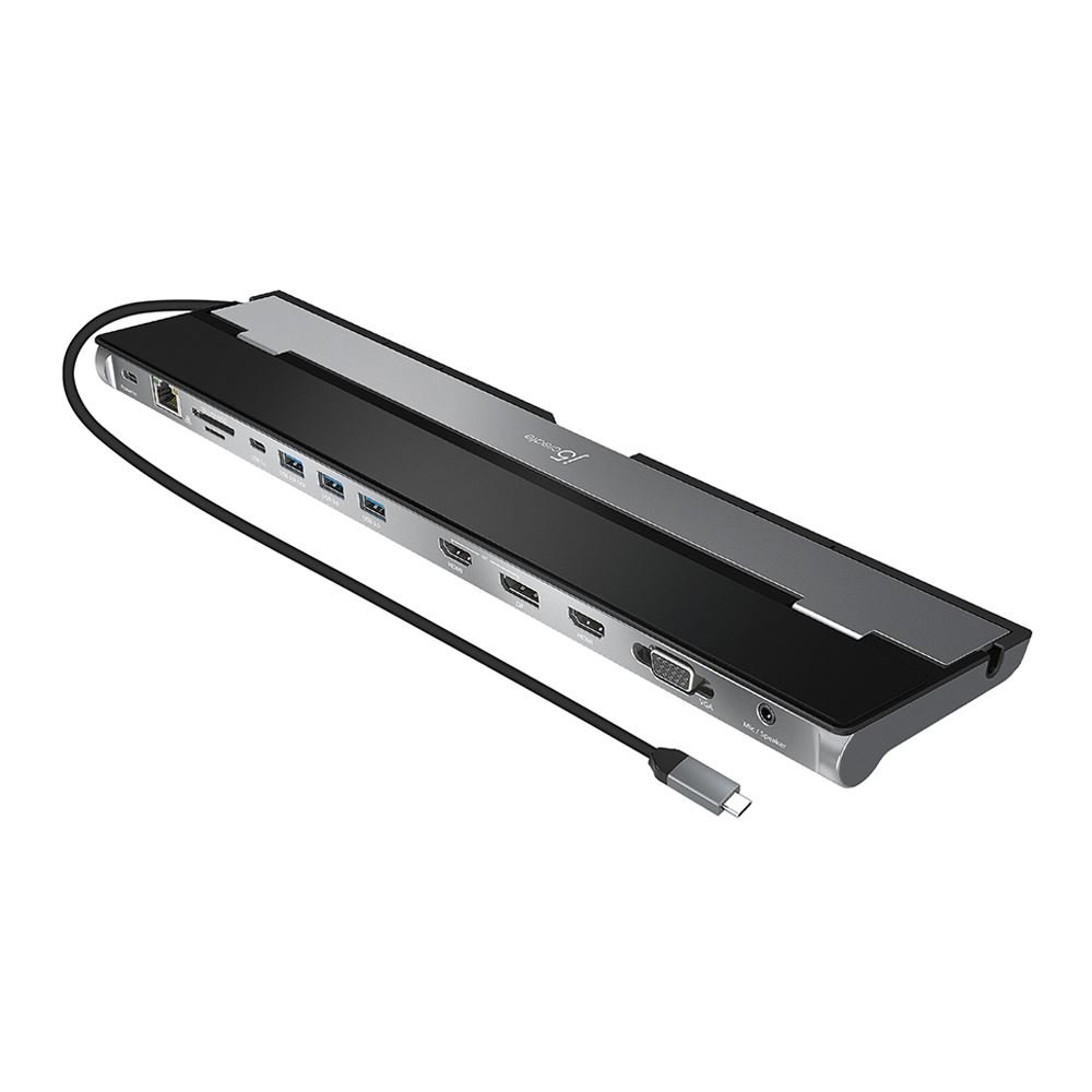 J5CREATE JCD543P USB-C™ Triple Display Docking Station with 100W Power Adapter — HDMI™, DisplayPort™, VGA, 3 x USB™ 3.1 Gen 1 Type-A, SD™/microSD™ Card Reader, Gigabit Ethernet, Audio Jack, and USB-C™ PD 3.0
