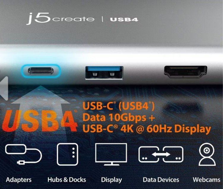 The JCD401 from j5create is a high-performance USB4® hub built with Intel®’s latest controller for seamless compatibility across USB4™, Thunderbolt™ 3/4, and legacy USB-C® devices. It supports dual 4K display output via DisplayPort™ 1.4 and USB-C® video, while offering two SuperSpeed+ 10Gbps ports (USB-A and USB-C®) for fast data transfer. The USB-C® PD passthrough delivers up to 85W to power laptops and connected peripherals. Compact and durable, it’s ideal for professional workflows and mobile setups.