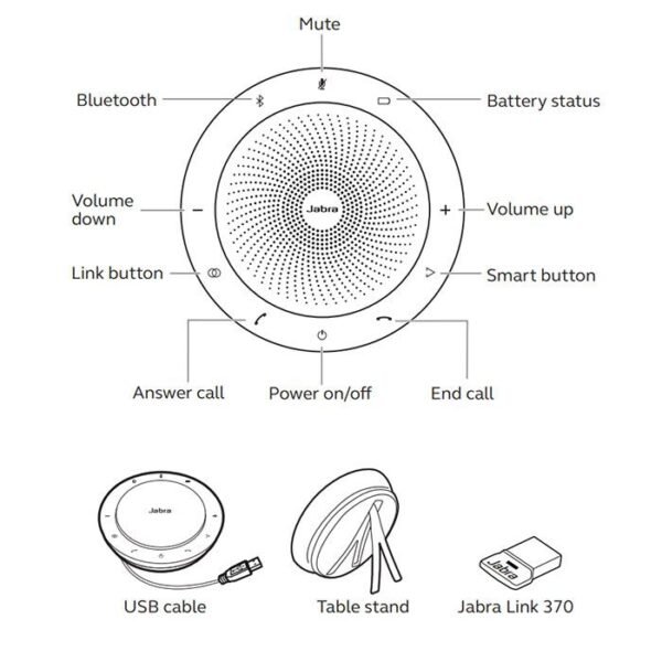 Jabra Speak 710 UC Edition – USB/BT Speakerphone with Link 370 Bluetooth Adapter (Model: 7710-409)