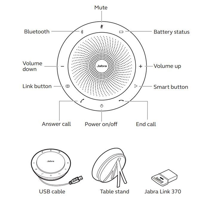 Included Accessories | Jabra Link 370, USB cable, neoprene pouch |