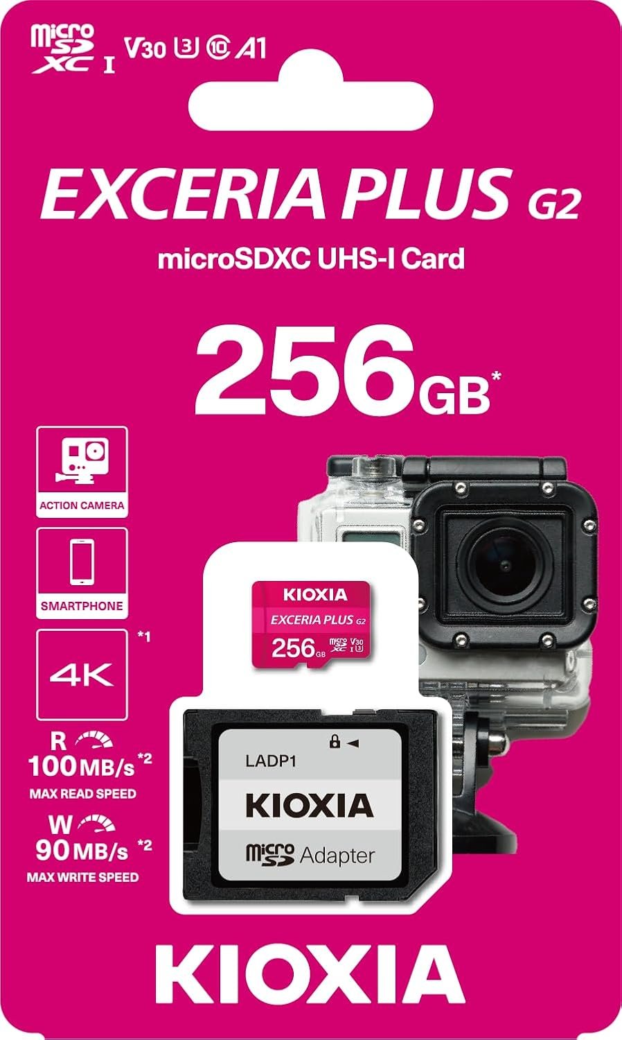 KIOXIA EXCERIA PLUS G2 microSDXC Memory Card 256GB โ Class 10, UHSโI U3, V30, A1, R100/W90