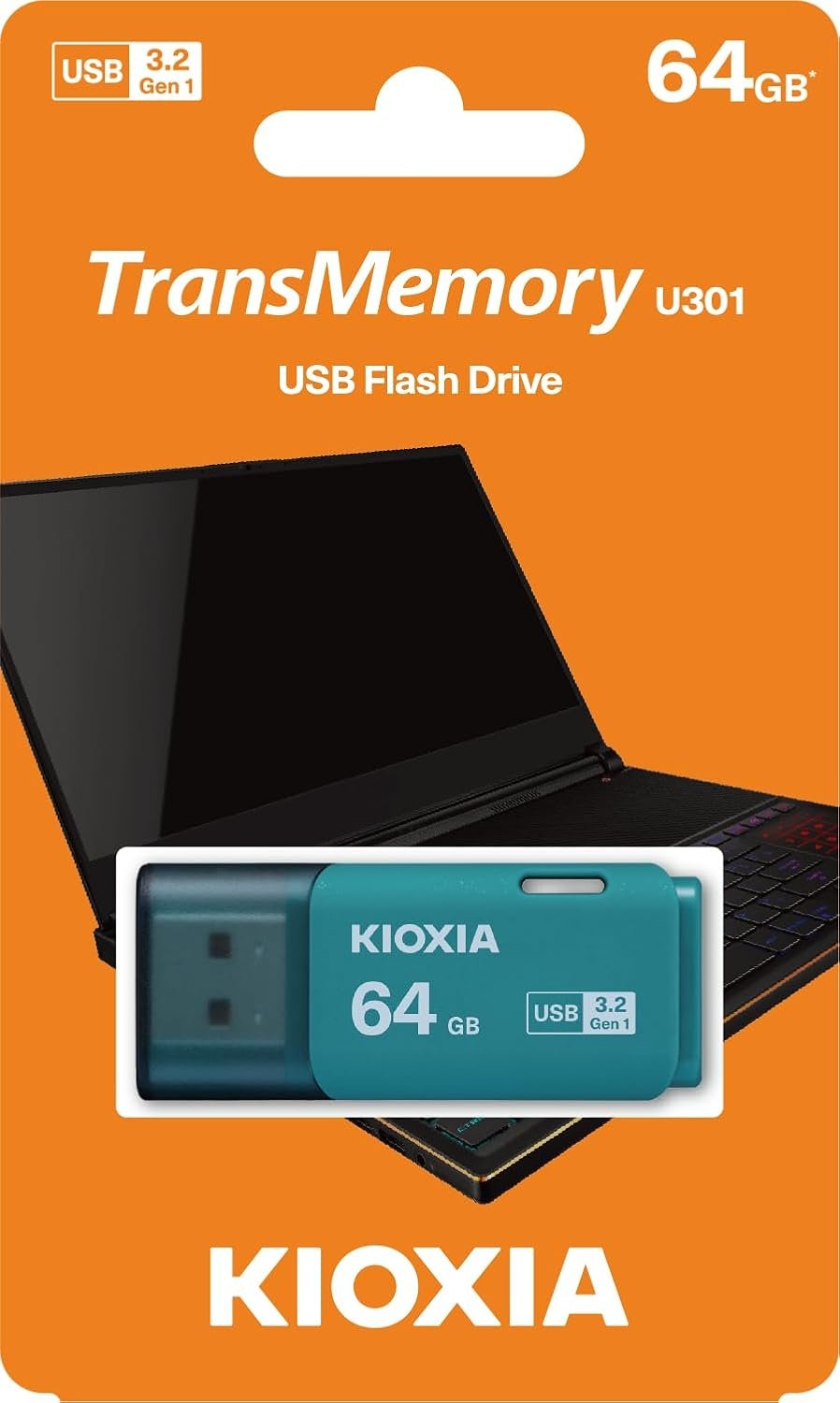 KIOXIA TransMemory U301 USB Flash Drive 64GB β USB 3.2 Gen 1, Model LU301L064GG4 (LB)
