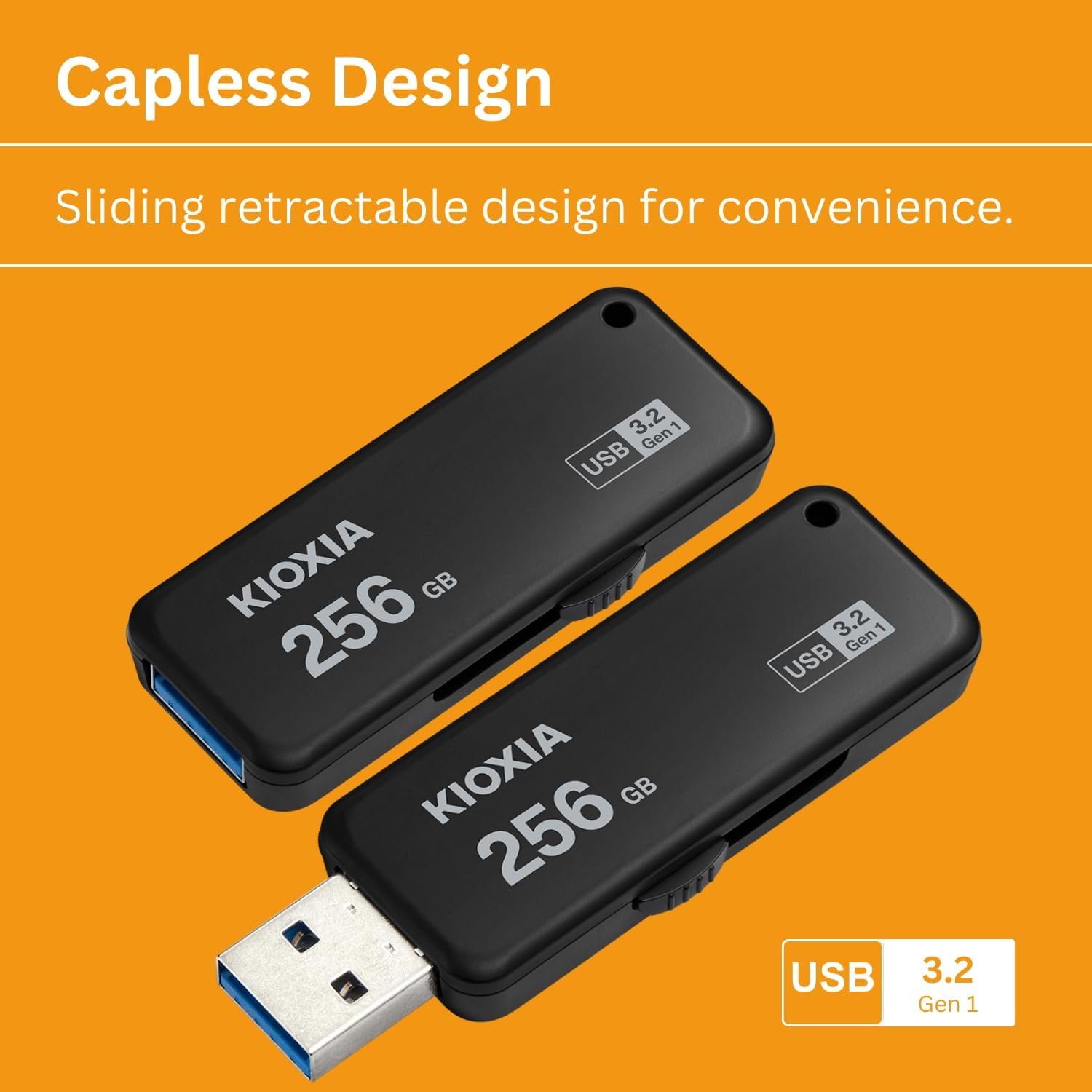 Choose KIOXIA TransMemory U365 for fast, reliable storage with a sleek sliding design.