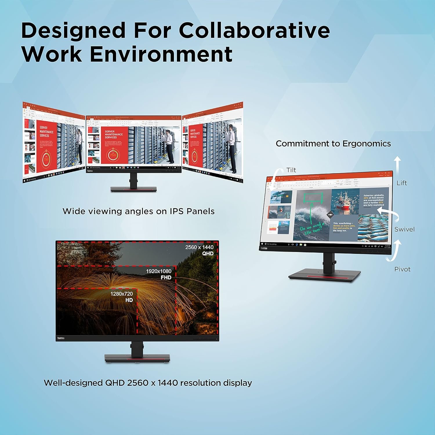 Lenovo ThinkVision T24h-20 QHD Type-C Monitor β 24″ IPS Display with USB-C, HDMI, DP, and Ergonomic Stand (Model: 61F0GAR1WW)