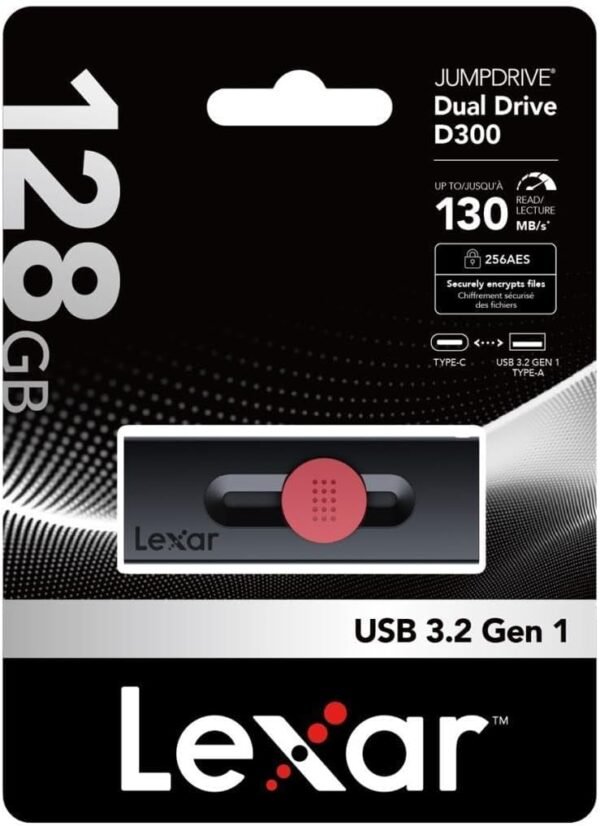 Transfer and protect your files — Lexar D300 128GB is your dual-interface flash drive for speed and security