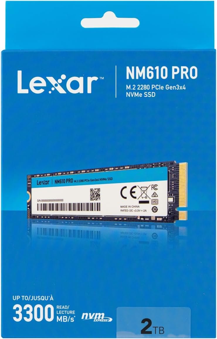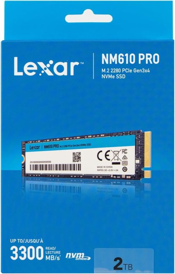 The Lexar NM610 PRO 2TB SSD delivers blazing-fast performance with PCIe Gen3x4 NVMe 1.4 interface, ideal for gamers, content creators, and professionals seeking responsive computing. With read speeds up to 3300MB/s and write speeds up to 2600MB/s, it significantly reduces load times and accelerates data-intensive tasks. Its compact M.2 2280 form factor fits seamlessly into modern laptops and desktops.