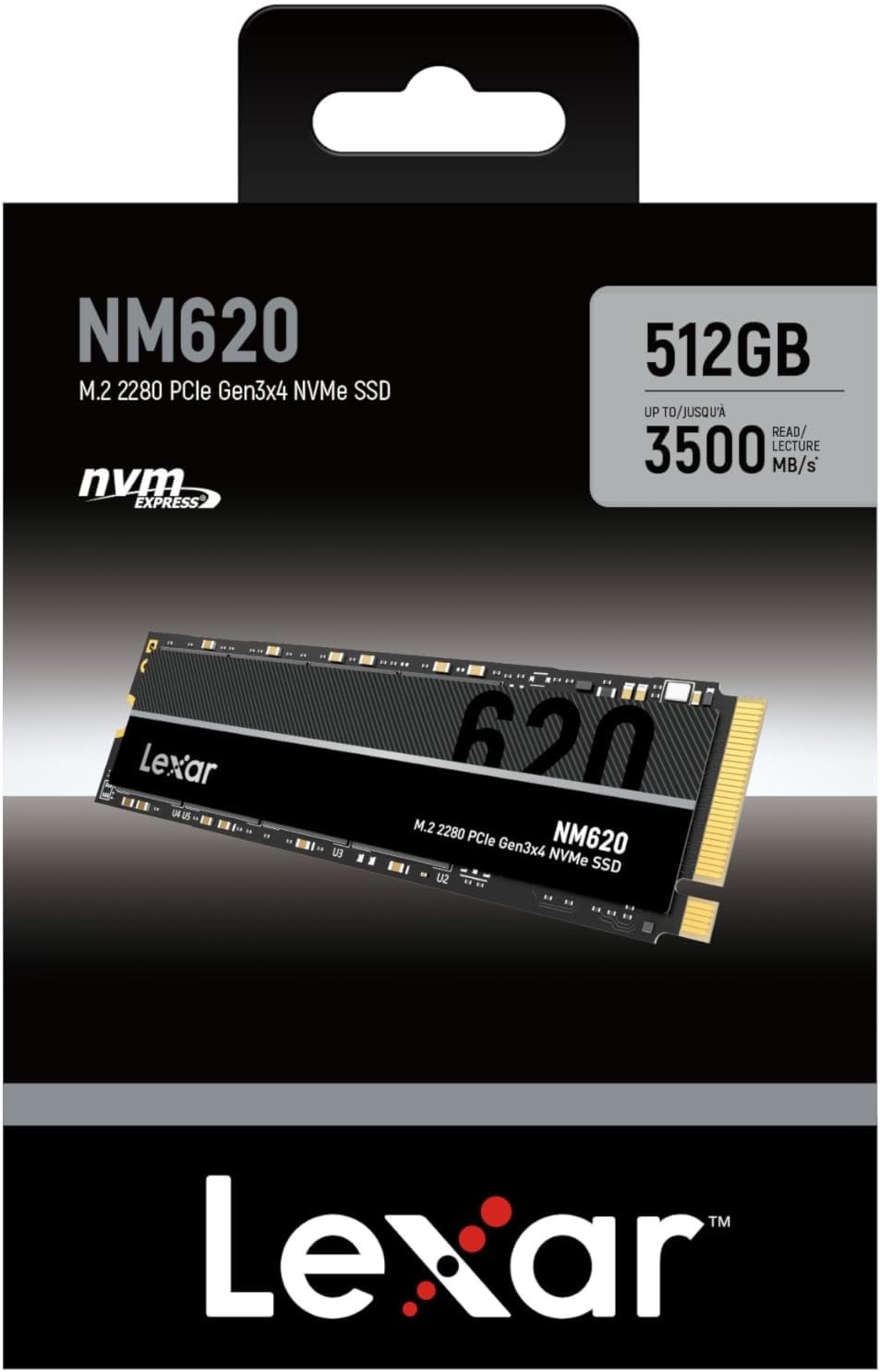 Lexar NM620 512GB M.2 2280 PCIe Gen3x4 NVMe SSD – LNM620X512G-RNNNG, up to 3500MB/s Read, 2400MB/s Write
