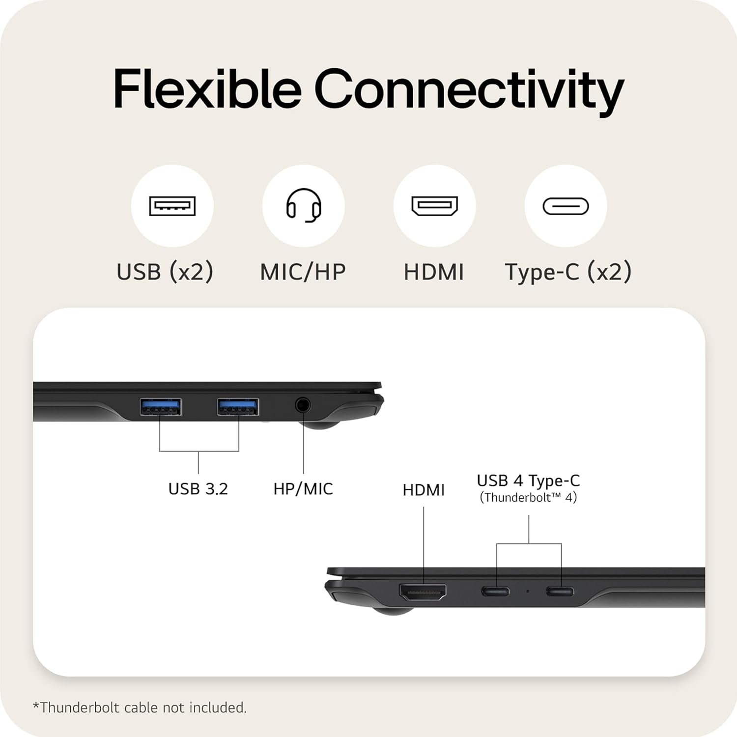 LG Gram 16Z90TL-G.AU78A3 16″ Laptop, Intel Core Ultra 7 256V, 16GB RAM, 1TB SSD, IPS 2560×1600 Display, Copilot+PC Features, Obsidian Black Finish