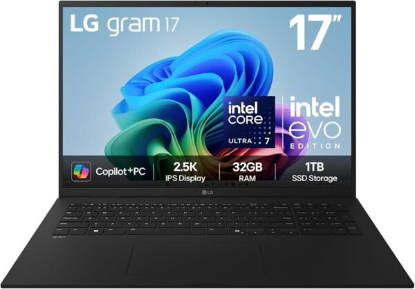 LG Gram 17Z90TL-G.AU88A3 Ultra PC, 17-inch IPS Display (2560Γ1600), U7 258V Processor, 32GB RAM, 1TB SSD, Copilot+PC, Obsidian Black
