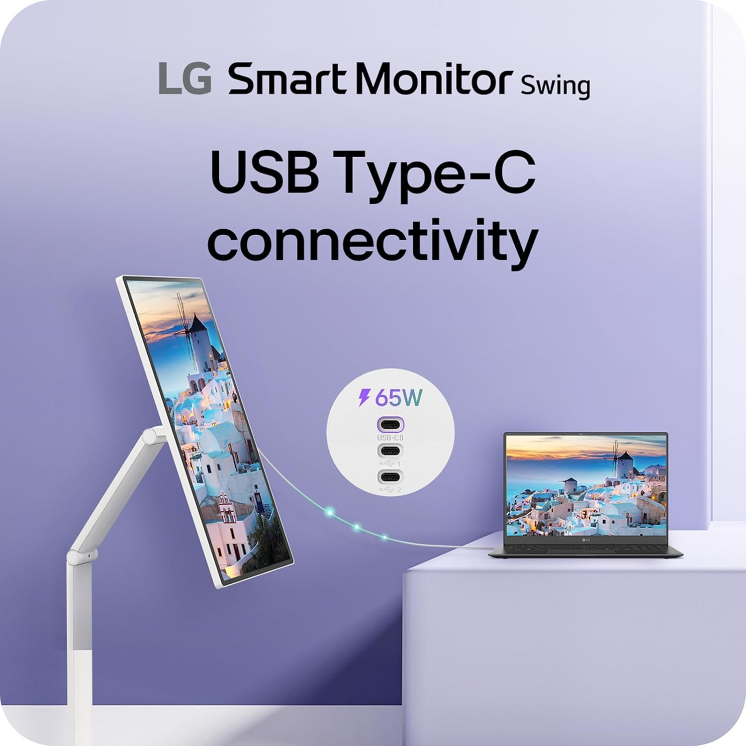 LG 32U889SA-W 32-inch UHD 4K IPS Monitor with USB-C PD65W, Built-in Speakers, Height Adjustable Stand, Swing Touch Function