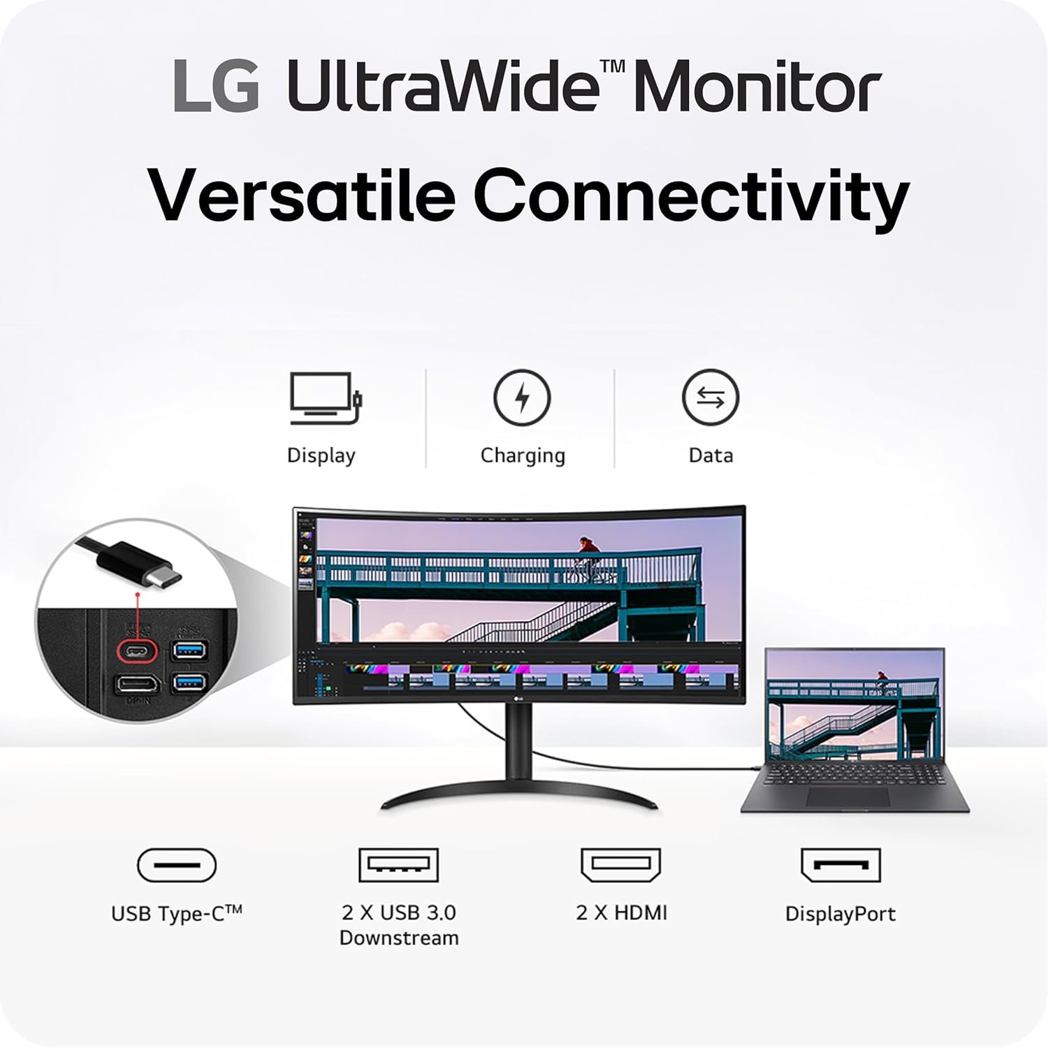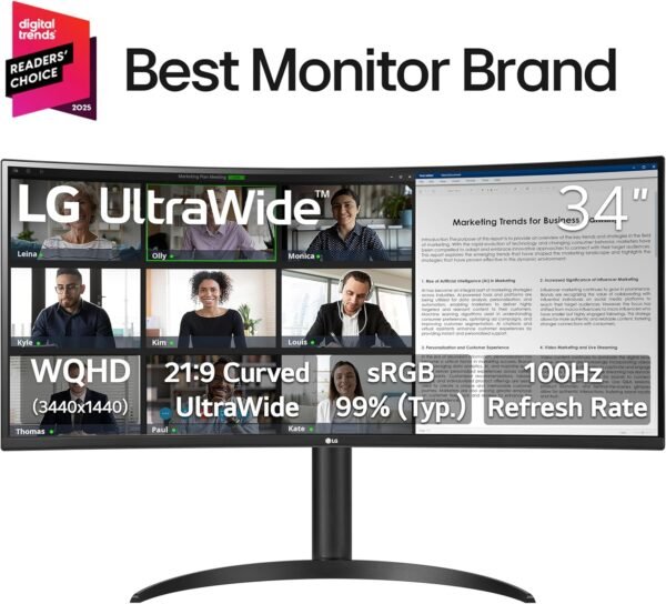 LG 34WR55QK-B 34โ€ UltraWide Curved WQHD VA Monitor with 100Hz Refresh Rate, HDR10, USB-C (65W PD), DisplayPort, HDMI, and Height Adjustable Stand