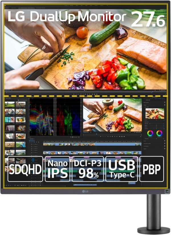 Elevate your workspace with LG’s innovative 28MQ780-B DualUp Monitor — a vertical 27.6″ display that combines two QHD screens into one, offering unparalleled multitasking efficiency.