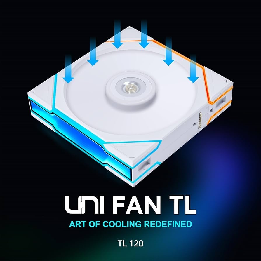 The LIAN LI UNI FAN TL120 Single Pack in White combines high-performance cooling with a clean, modern aesthetic. Its reverse blade design provides optimized airflow and static pressure, ideal for radiators, heatsinks, or case ventilation. The modular design allows easy daisy-chaining with other TL120 fans for synchronized control. Built for quiet operation and long-lasting performance, this fan is perfect for enhancing both airflow and style in any PC build.