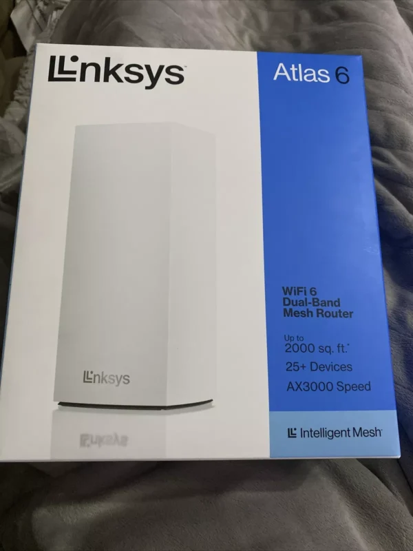 The Linksys MX2001-AH Atlas 6 is a dual-band mesh Wi-Fi 6 system designed to deliver fast, reliable wireless coverage throughout your home. With speeds up to 3.0 Gbps and support for over 25 devices, it’s ideal for streaming, gaming, and smart home connectivity. Powered by the Qualcomm Immersive Home 214 platform, it uses Intelligent Mesh technology to dynamically optimize coverage and performance. Each node covers up to 2,000 sq. ft., and additional nodes can be added for larger homes.
