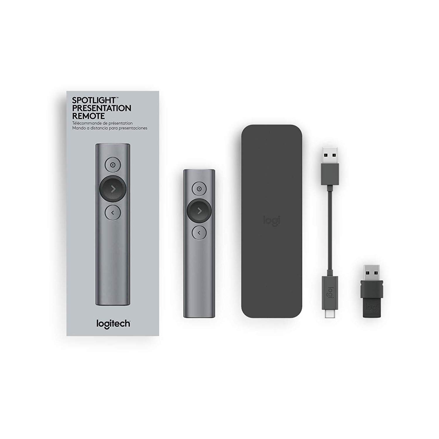 Logitech Spotlight Wireless Presenter β Slate, Model 910-004863, Advanced Presentation Remote with Digital Highlighting