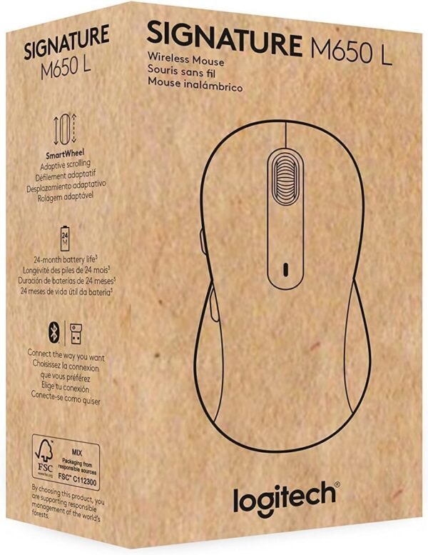 The Logitech Signature M650 L for Business is designed to deliver comfort and efficiency for professionals. With a larger ergonomic shape, SmartWheel precision scrolling, and dual wireless connectivity (Bluetooth and Logi Bolt USB receiver), it ensures seamless performance across devices. Long battery life and quiet clicks make it ideal for business environments where productivity and focus matter.