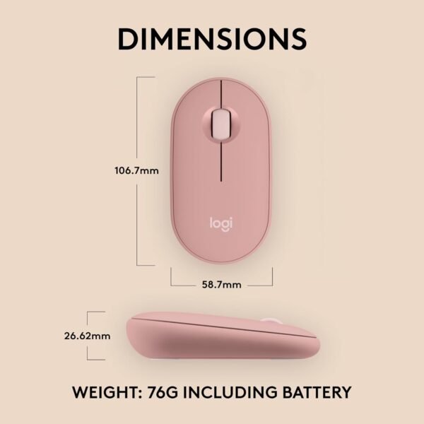 Logitech 910-006987 Pebble Mouse 2 M350s Wireless Mouse โ Tonal Rose, slim portable design with Silent Touch technology, Bluetoothยฎ & Logi Bolt connectivity