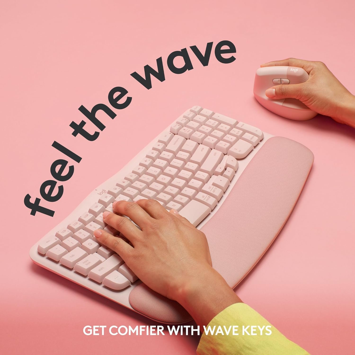 🛍️ Logitech Wave Keys Ergo Wireless Keyboard – Rose