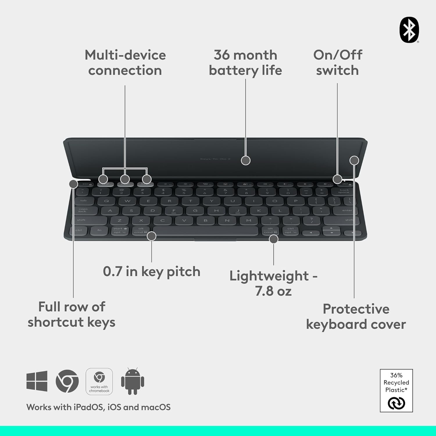 Multi-Device Support Easy-switch keys for up to 3 devices