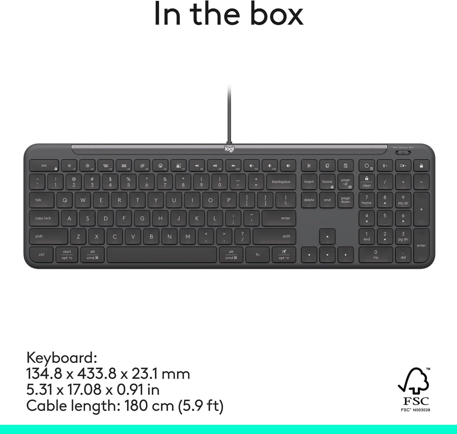 ⌨️ Full-Size Layout – Includes numeric keypad for productivity