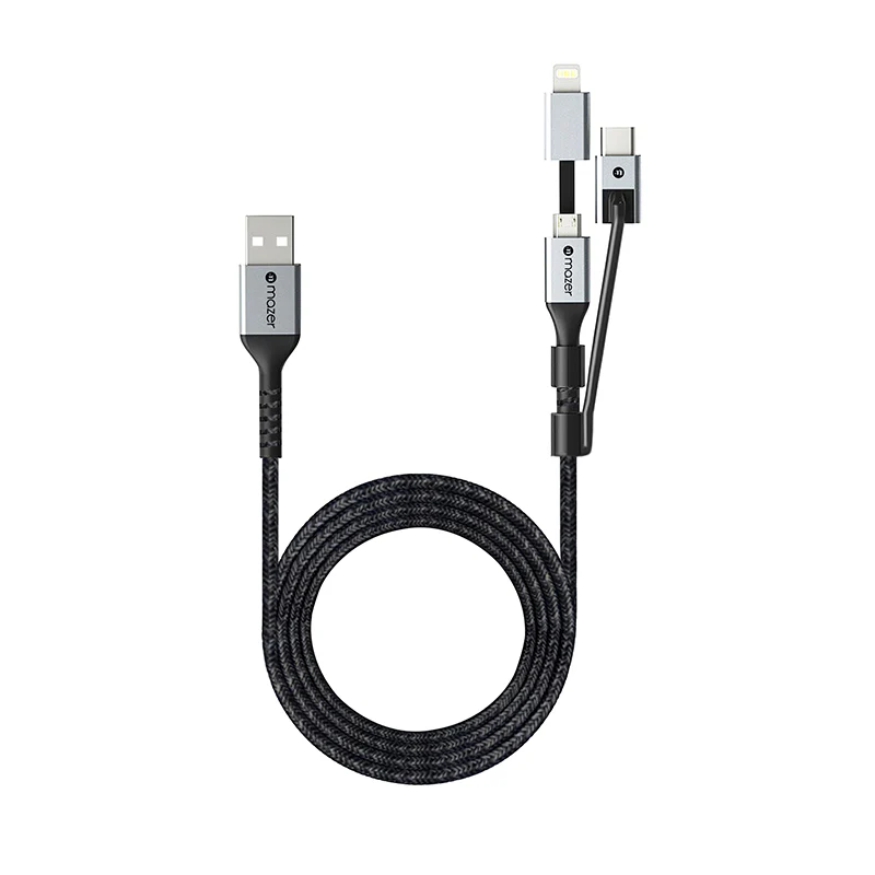 Mazer M-KS-A95P-BK 3-in-1 USB to Lightning + Micro USB + USB-C Charging Cable โ 3.1A Output, Black