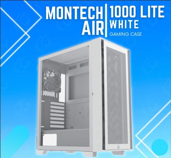 The MONTECH AIR 1000 LITE-W is a clean and efficient ATX mid-tower case designed for builders who value airflow and aesthetics. With three pre-installed high-airflow fans, a quick-release mesh front panel, and a swivel tempered glass side panel, it delivers both cooling performance and visual appeal. Its spacious interior supports full-sized GPUs and advanced cooling setups, making it ideal for gaming and productivity builds.