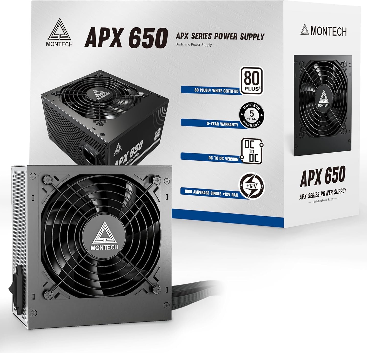 MONTECH MNT-AP650 AP Series 650W ATX Power Supply – 80 PLUS® White Certified, Non-Modular, Silent 120mm Fan, Single +12V Rail