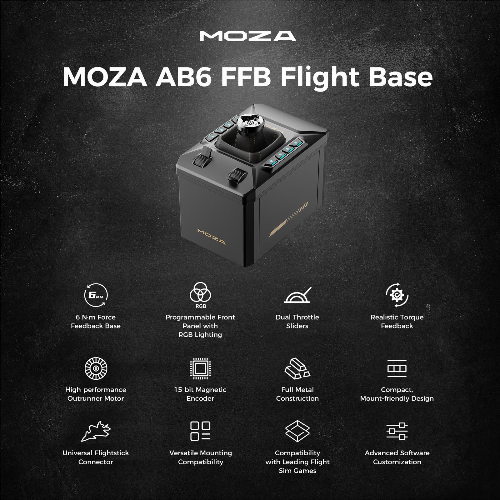 MOZA Racing AS017 AB6 Flight Simulator – 6Nm dual servo motor force feedback base, forged aluminum alloy construction, RGB programmable panel, PC compatible
