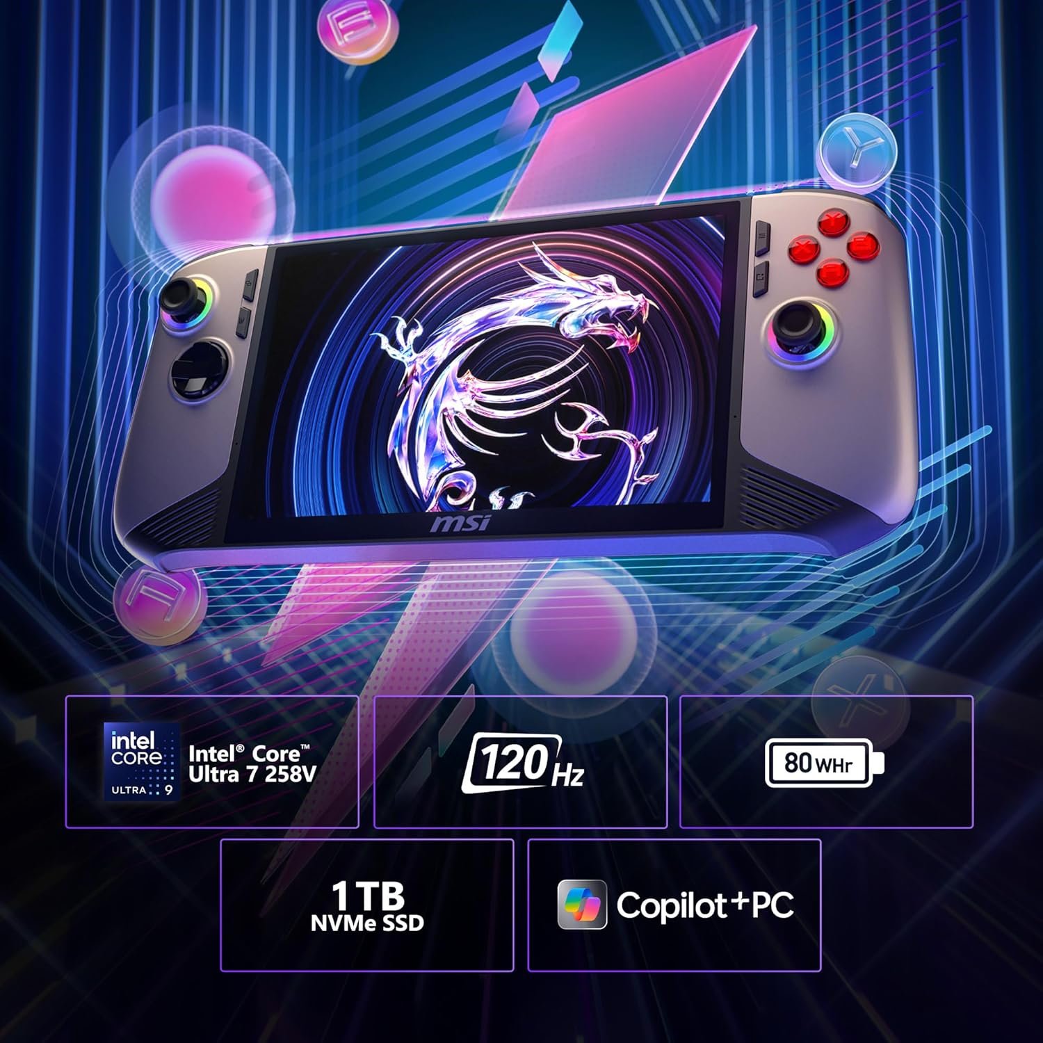 MSI Claw 8 AI+ A2VM-025SG – Intel® Core™ Ultra 7 Processor, Intel® Arc Graphics, 8-inch FHD Touch Display Handheld Gaming Console