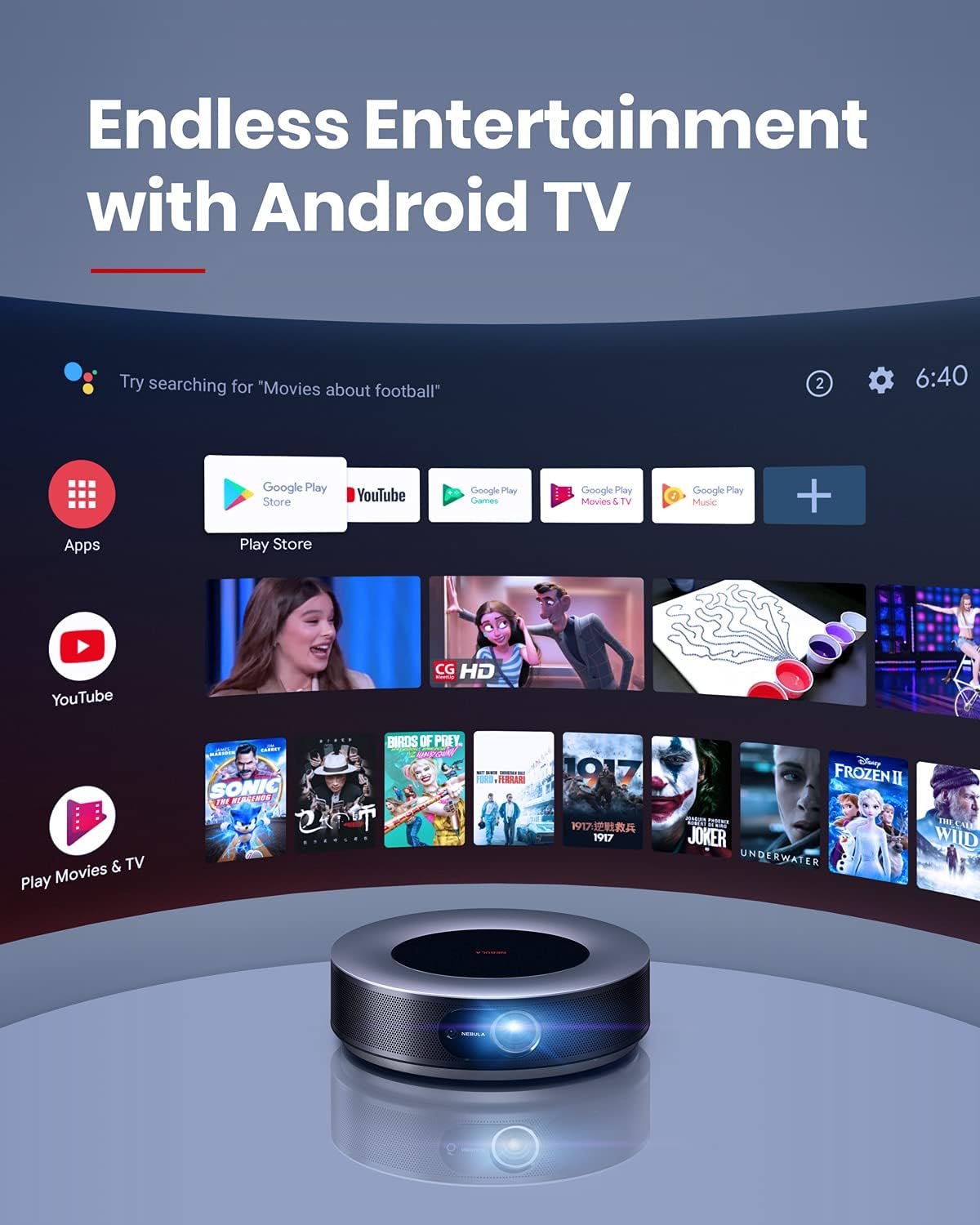 Nebula Cosmos Max 4K Home Entertainment Projector – Model D2150211, 3840 × 2160 Resolution, Dolby Audio, Android TV, Dual 15W Speakers