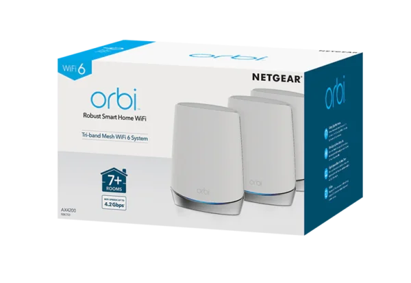 The complete mesh WiFi solution for your smart home. Cover up to 7,500 sq. ft. with blazing-fast, reliable WiFi with speeds of up to 4.2Gbps for over 40 devices. Stream, browse, and work uninterrupted in every room of your home. Keep your family and your connected devices safe from online threats with 1 year of NETGEAR ArmorTM all-in-one internet security.
