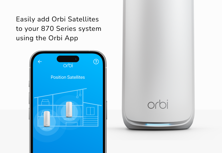 Add the Orbi RBE870 Satellite to your system and enjoy seamless WiFi 7 coverage everywhere.