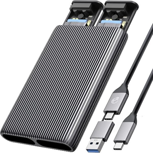The ORICO AXM2SG2 is a dual-bay external SSD enclosure designed for both M.2 NVMe and M.2 SATA (NGFF) SSDs. With independent slots and USB 3.2 Gen2 interface, it delivers up to 10Gbps for NVMe and 6Gbps for SATA. Its aluminum alloy body, integrated heat sinks, and tool-free design make it ideal for fast backups, cloning, or portable storage across platforms.