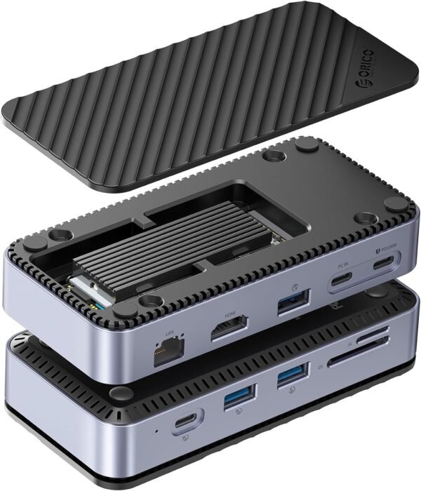 ORICO DPM2P9 USB-C Hub with M.2 SSD Enclosure, 10-in-1 Docking Station, 10Gbps USB3.2 Gen2, 4K@60Hz HDMI, 100W PD, RJ45 Gigabit LAN
