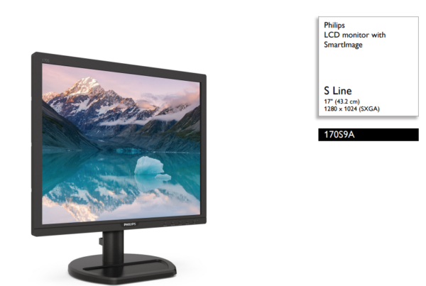 Philips 170S9A 17″ LED Monitor – 5:4 Square Aspect Ratio, VGA & DVI Connectivity