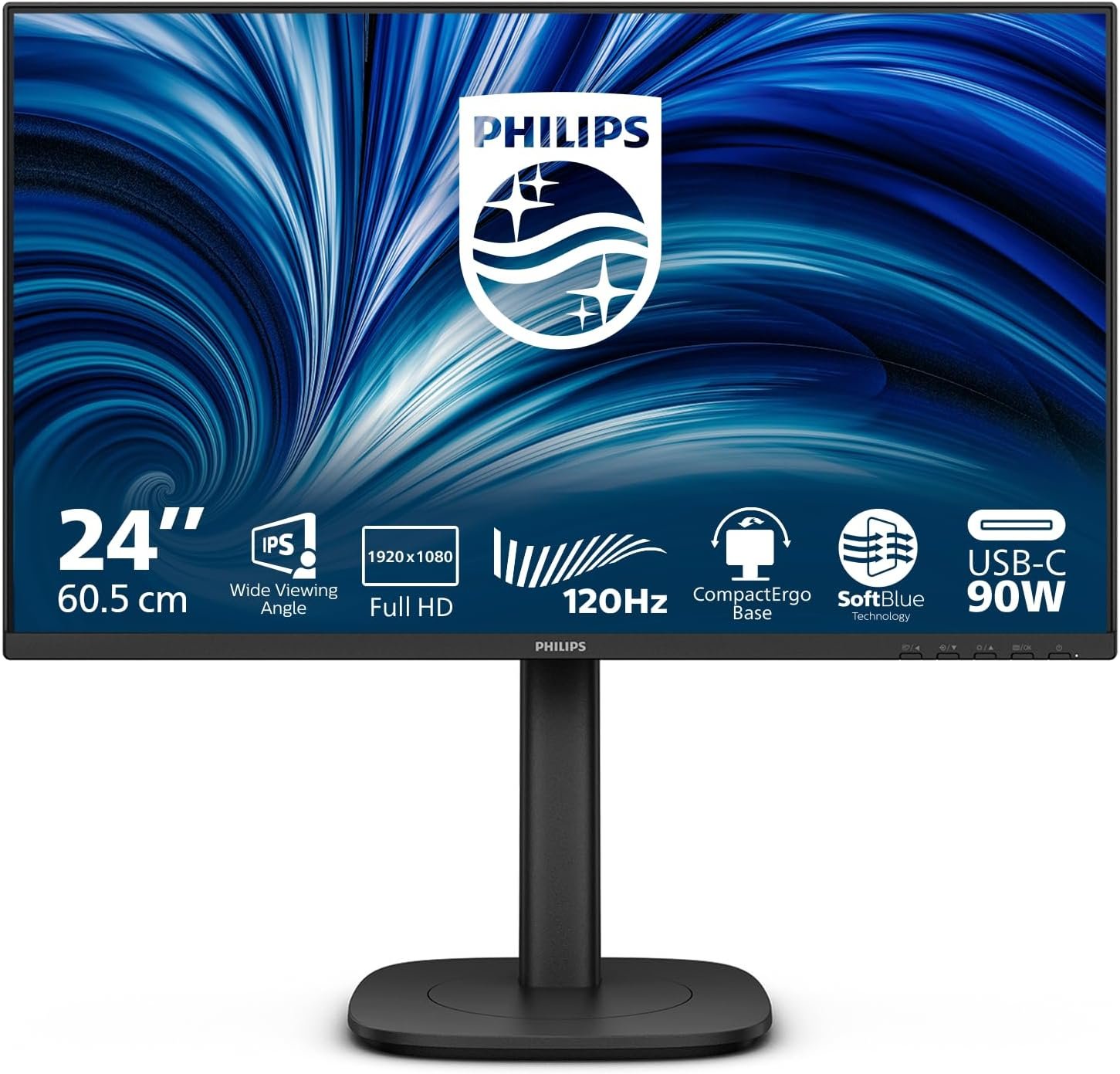 Philips 24B2U3301 23.8″ IPS FHD LED Monitor – 120Hz, HDMI 1.4, DP 1.4, USB‑C Docking with 90W Power Delivery, RJ45, Daisy Chain DP‑Out, Swivel & Pivot Ergonomics