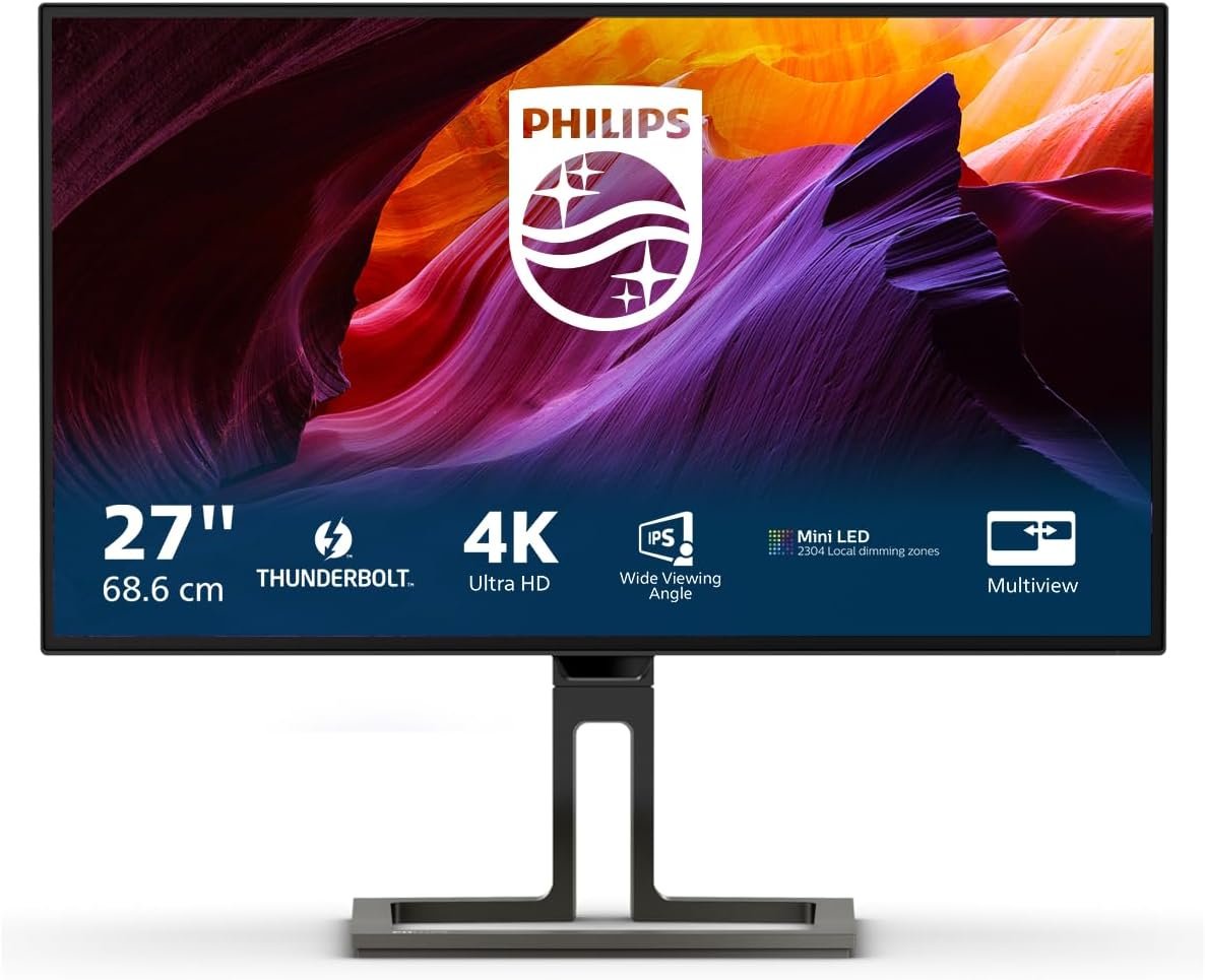 Philips 27B1U7903 27″ UHD 4K Mini-LED Monitor – Thunderbolt 4, DisplayHDR 1400, DisplayPort 1.4, Dual HDMI 2.0, Height Adjustable Stand, Pivot, Built-in Speakers