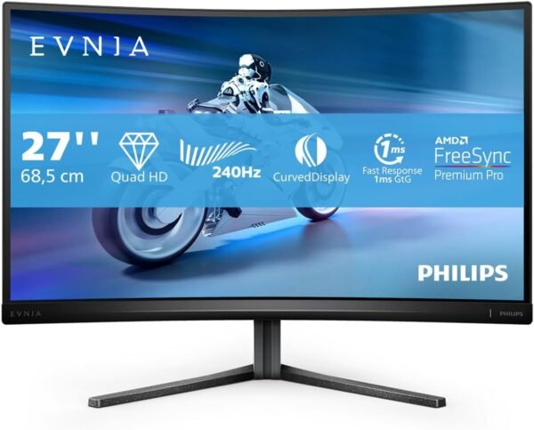 Philips 27M2C5500W Evnia Gaming Monitor – 27″ Curved 1000R, QHD 2K, 240Hz, HDMI 2.0 x2, DisplayPort 1.4 x2, PIP/PBP, Built-in Speakers, VESA Mount