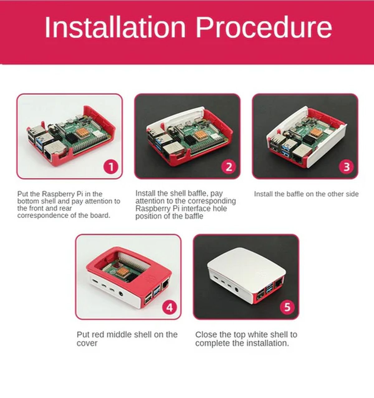 🎨 Stylish Red/White Design → Adds visual appeal to your Raspberry Pi setup.