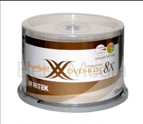 The Ritek DVD+R Dual Layer 8.4GB 8X White Inkjet Printable discs offer a reliable and high-capacity solution for your media storage needs. With features like customizable labeling, fast write speeds, and broad compatibility, these discs are an excellent choice for professionals and enthusiasts alike.