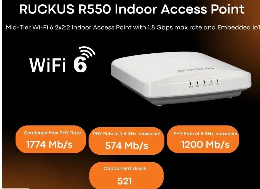 RUCKUS Unleashed R550 Dual-Band Wireless Access Point – Model 9U1-R550-WW00, 802.11a/b/g/n/ac/ax, 2×2:2 MU-MIMO, Indoor, Wi-Fi 6, Integrated Ethernet Ports