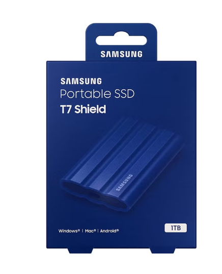 The Samsung T7 Shield Portable SSD 1TB offers high‑speed performance in a rugged, travel‑ready design. With USB 3.2 Gen 2 connectivity, shock resistance, and IP65 dust and water protection, it’s built for creators, professionals, and everyday users who need reliable storage on the go.