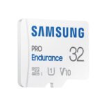 The Samsung 32GB PRO Endurance microSDHC card takes the worry out of “always-on” recording. Capture the crucial moments, with long lasting performance for high-resolution video monitoring.