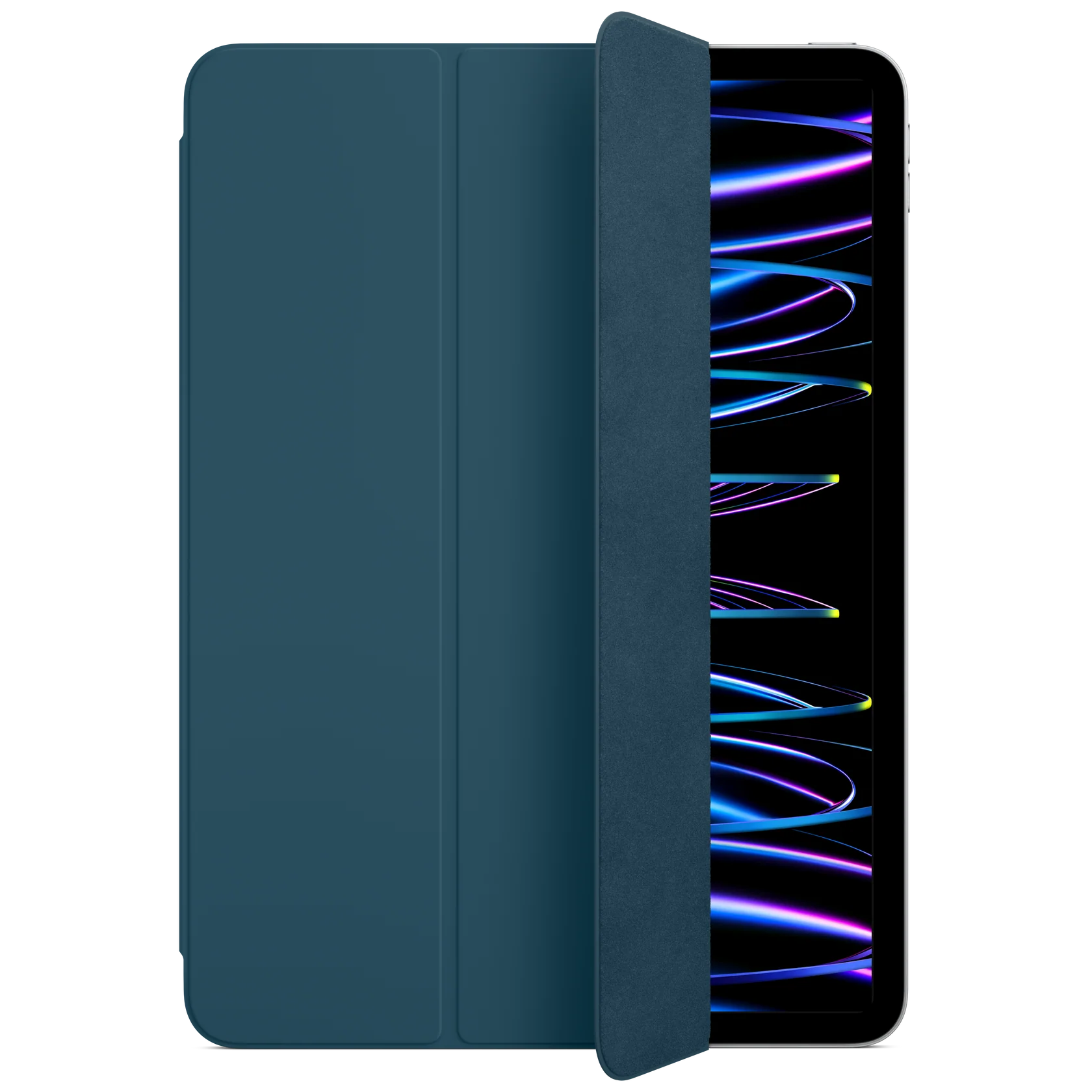 The Apple Smart Folio for iPad Pro 11‑inch (4th generation) in Marine Blue provides lightweight, all‑around protection with a refined finish. It magnetically attaches to your iPad Pro and folds into multiple positions, creating a versatile stand for reading, typing, watching videos, or FaceTime calls. Slim and stylish, it keeps your device protected while complementing its design.