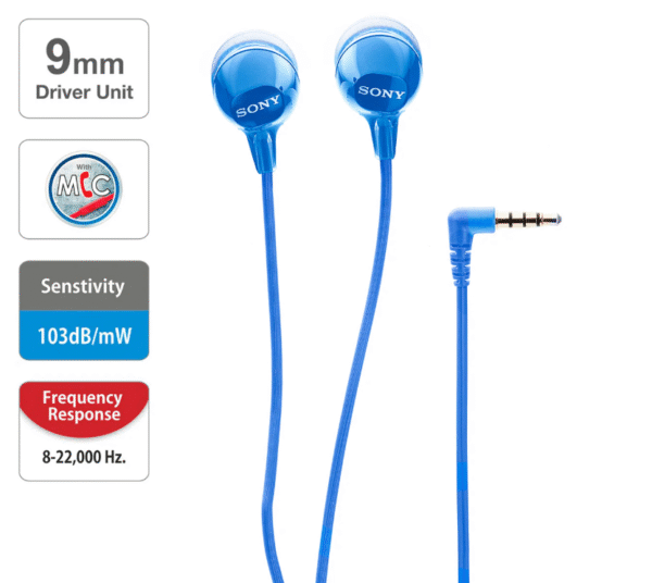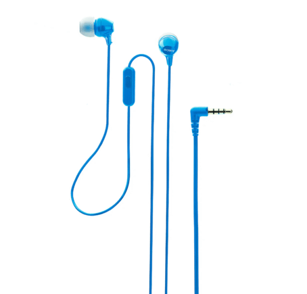 Stay connected and enjoy clear sound with Sony MDR-EX15AP — comfort and convenience in blue.