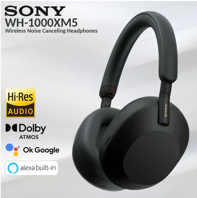 The Sony WH-1000XM5 headphones deliver advanced noise cancellation and immersive audio in a sleek, lightweight design. Featuring 30mm precision-engineered drivers, Bluetooth 5.2 connectivity, and support for LDAC high-resolution audio, they provide rich, detailed sound. With adaptive sound control, ambient mode, and long battery life, these headphones are ideal for commuting, travel, work, and premium everyday listening.